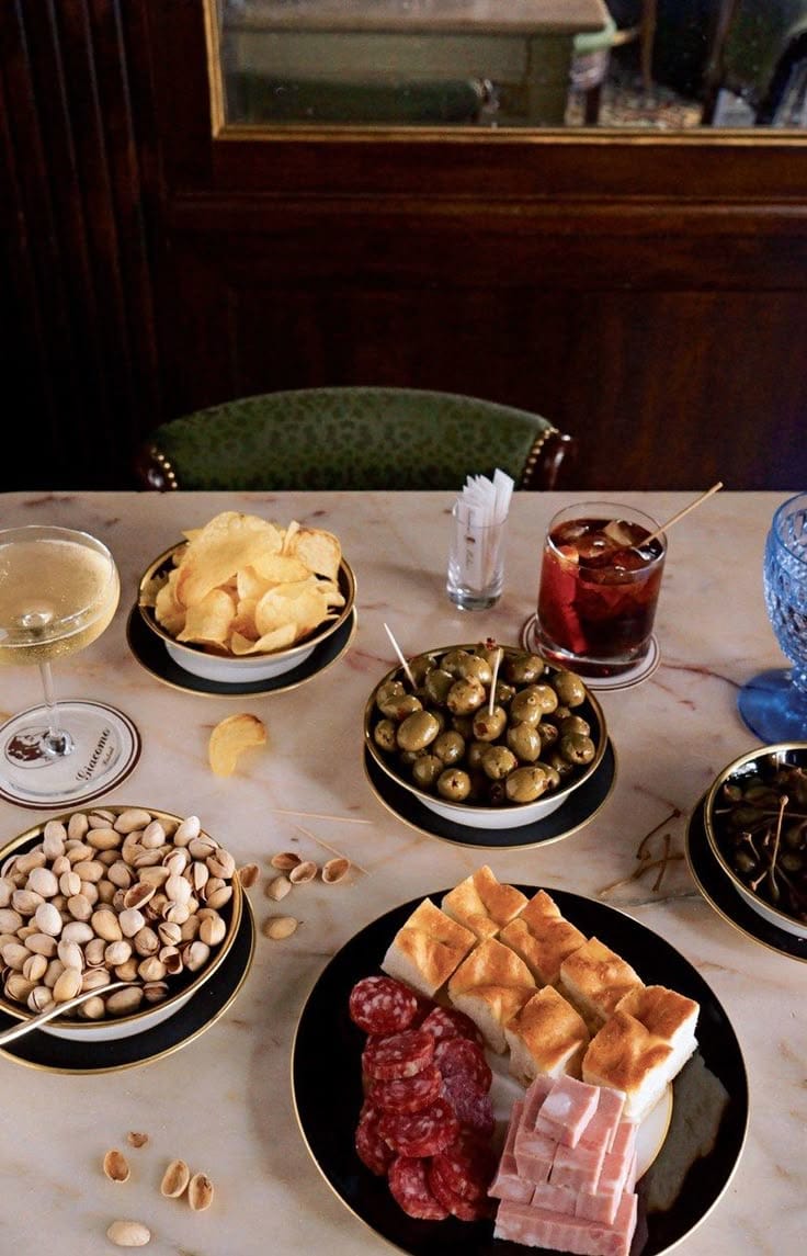Aperitivo is 50 percent importance on the drink and 50 percent on the snack. We're not into anything too hard for an aperitivo, it's usually still daylight after all. A few favourites that feel right with the evening light: