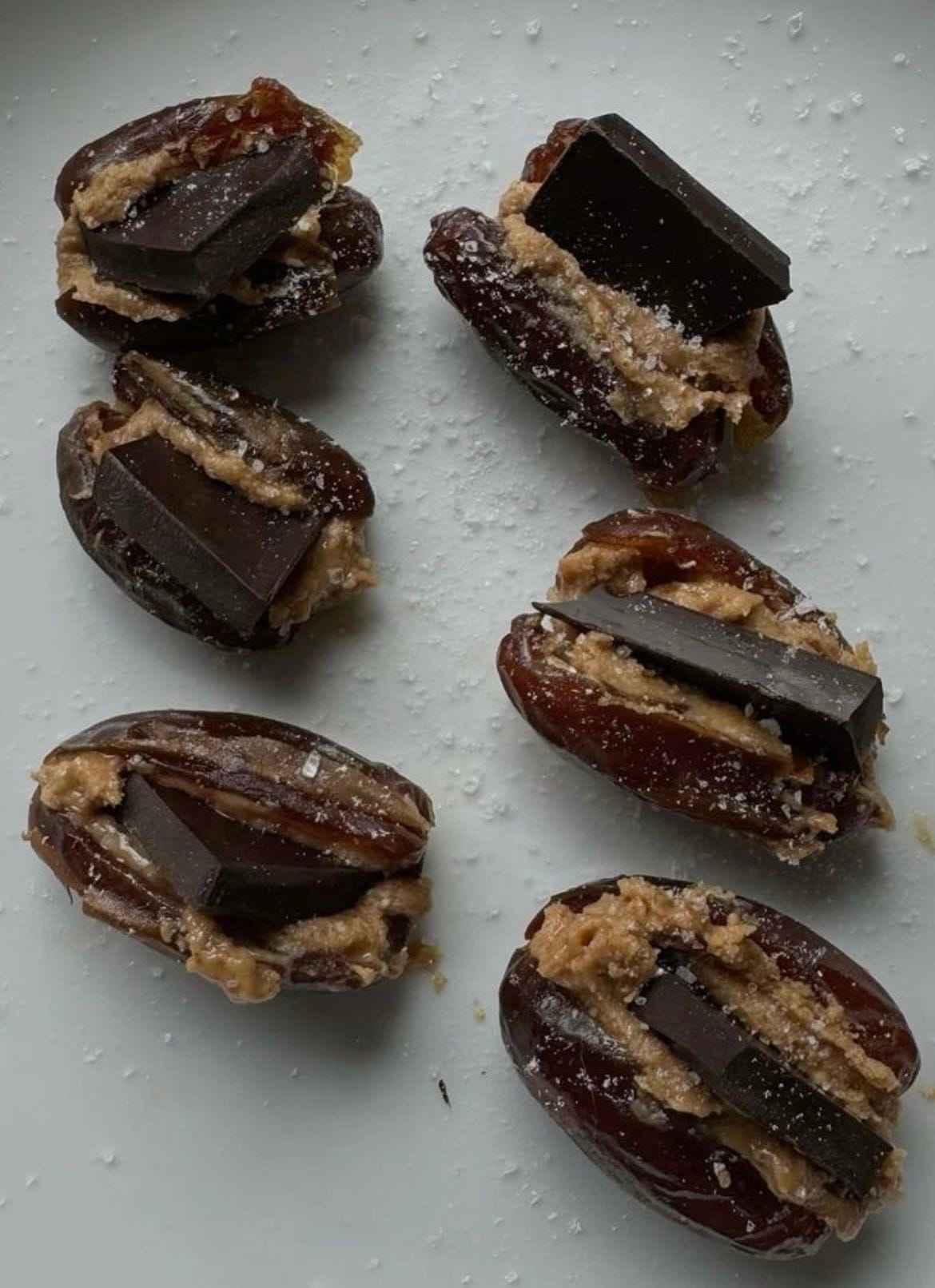 Snack: A couple of dates stuffed with almond butter and some dark chocolate - an elite snack.