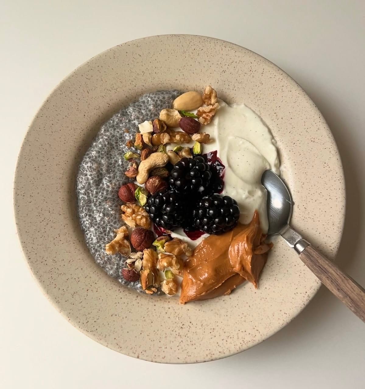 Snack: Chia pudding or overnight oats prep for Monday. Nibble while we're making it.