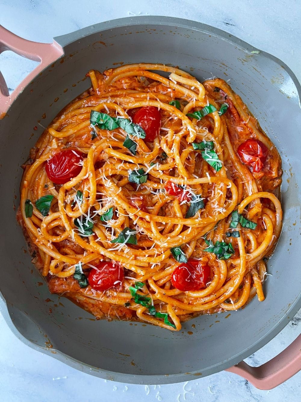 Dinner: Pasta with a homemade tomato sauce with fresh basil, it takes minutes to make and it will always beat the ingredients in a jarred sauce. Usually with parmesan and a side salad.